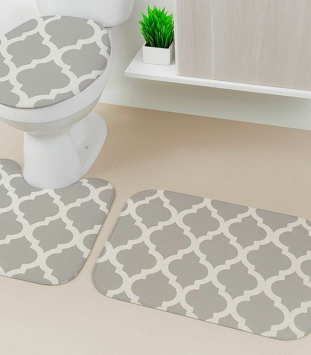 Jogo De Banheiro Estampado Tapetes Junior Cinza