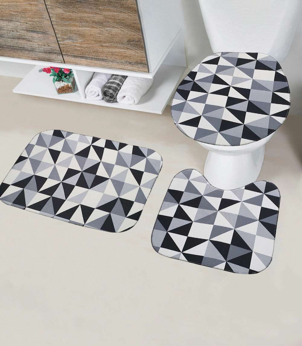 Jogo De Banheiro Estampado Tapetes Junior Cinza