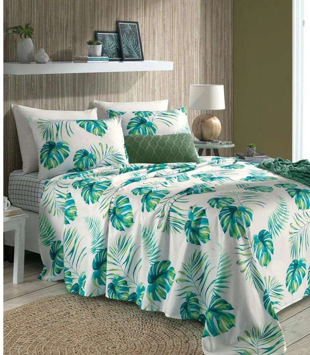 Jogo De Cama Casal Folhas 200 Fios Lar E Lazer Branco