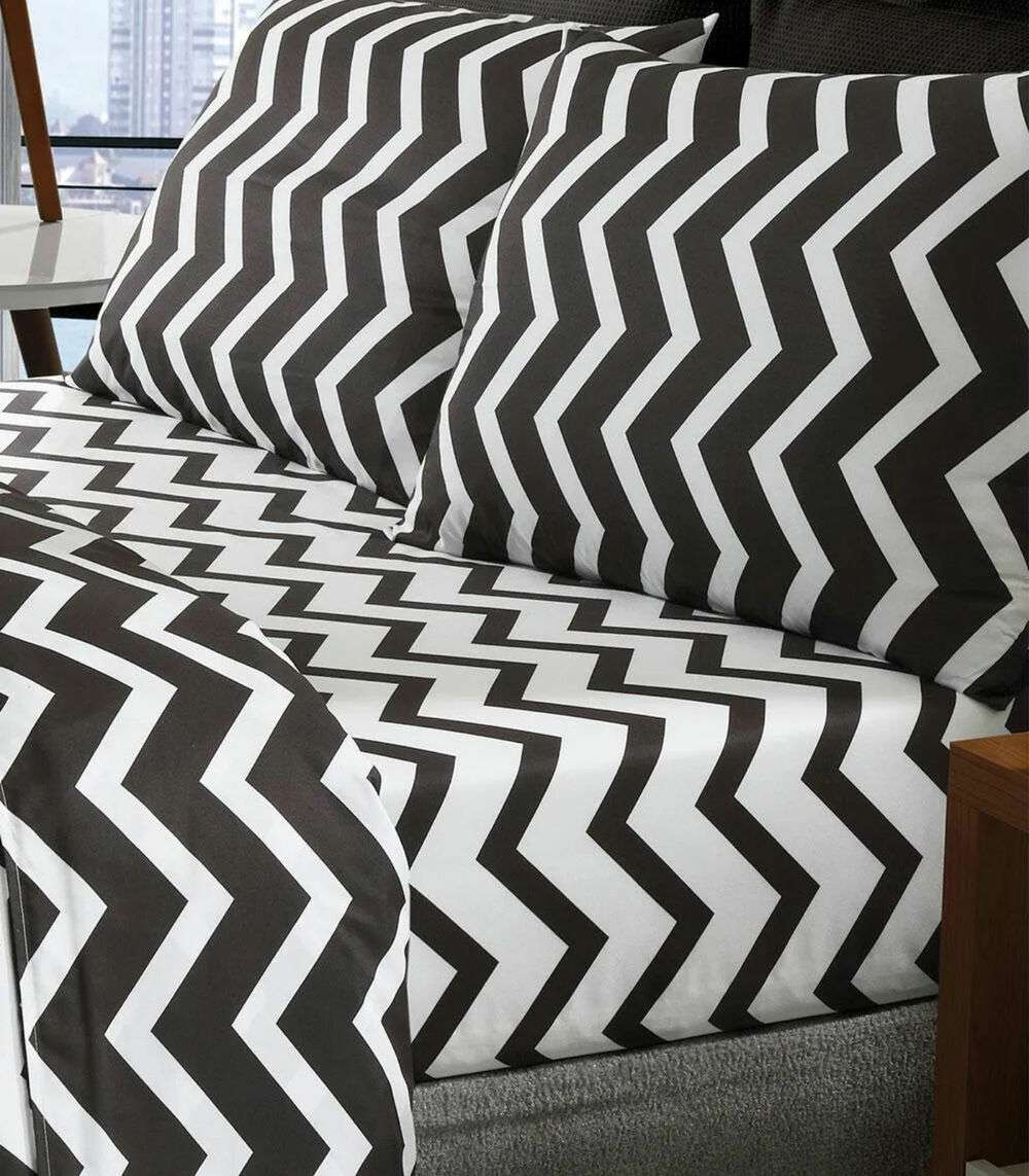 Jogo de Cama Chevron Queen Lar E Lazer Preto