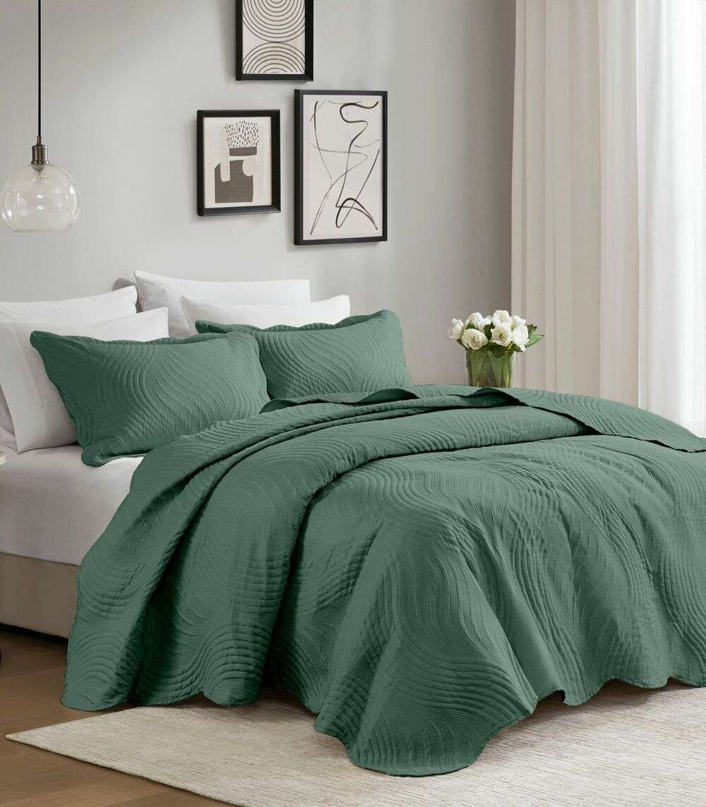 Jogo De Colcha Casal Milão 150 Fios Corttex Verde