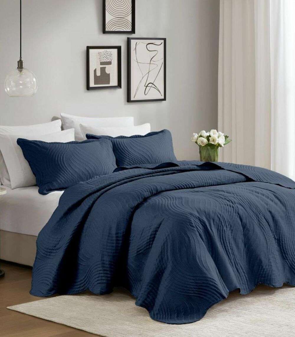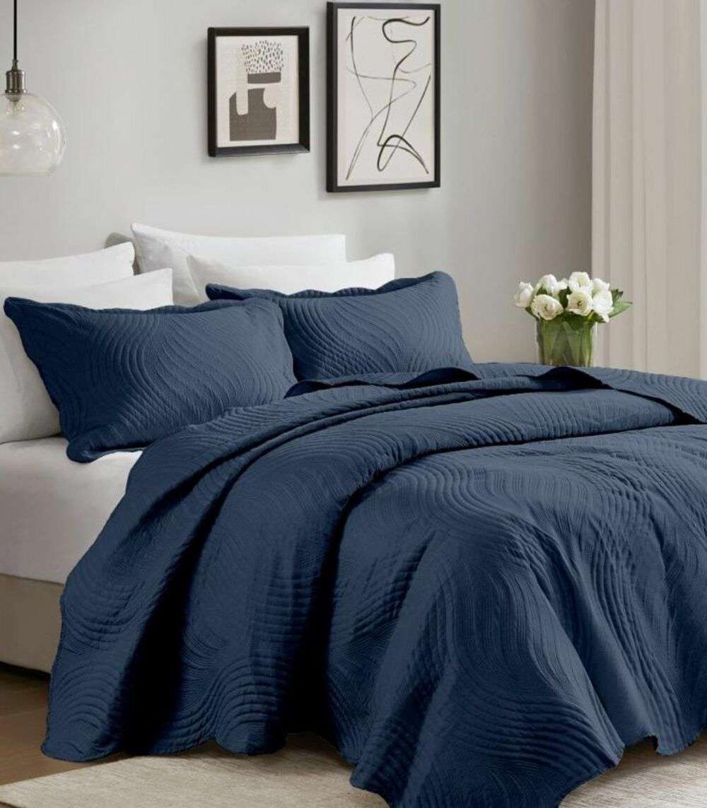 Jogo De Colcha Queen Milão 150 Fios Corttex Azul