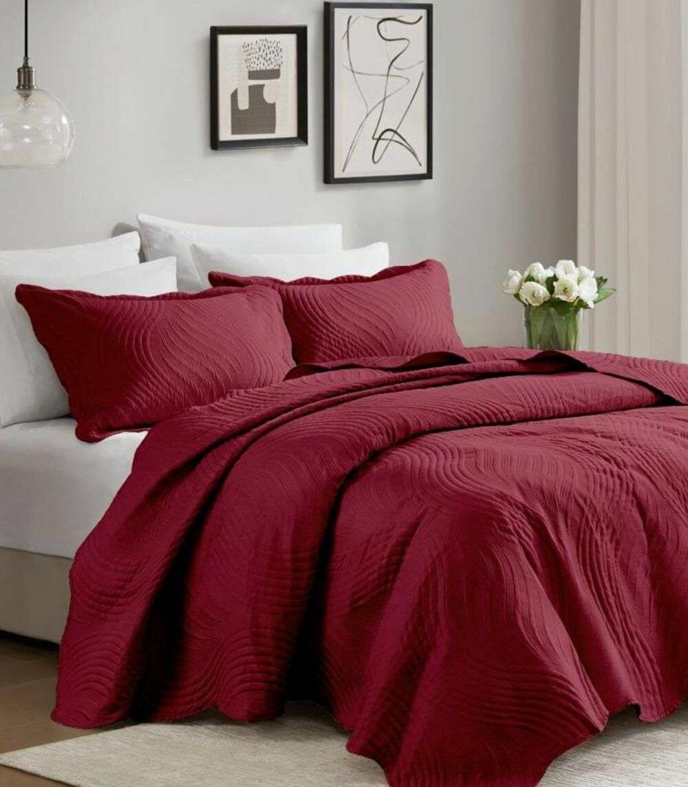 Jogo De Colcha Queen Milão 150 Fios Corttex Vermelho