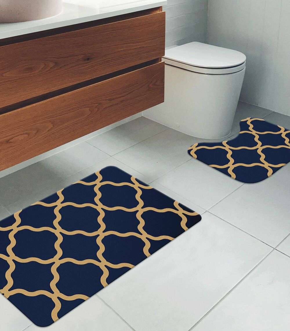 Jogo De Tapetes Para Banheiro Composto por duas peças sendo: 1 peça 34cm x 60cm e 1 peça 34cm x 44cm. Possui estampa digital de alta qualidade aplicado por termotransferência, base emborrachada antiderrapante. Perfeito para deixar seu ambiente ainda mais aconchegante.