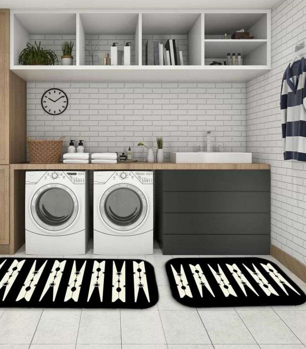 Jogo De Tapetes Para Lavanderia Wevans Preto