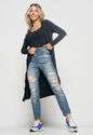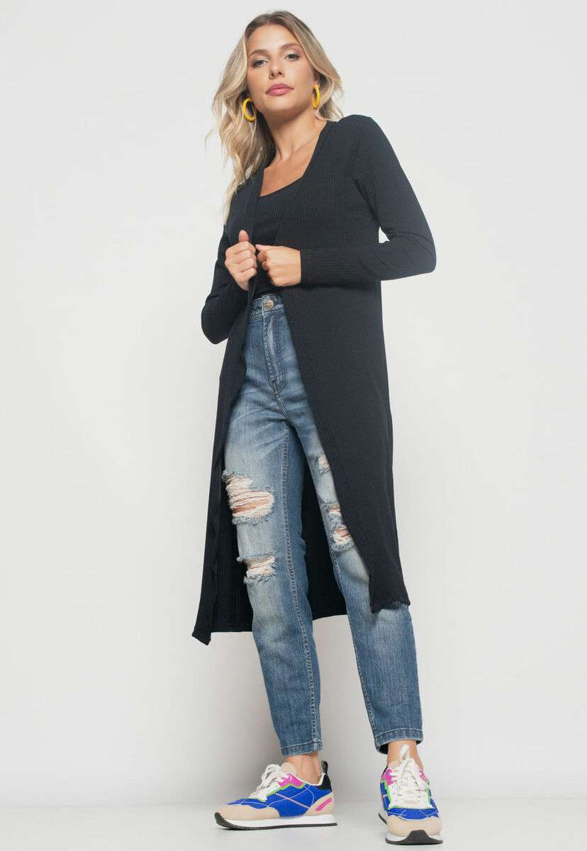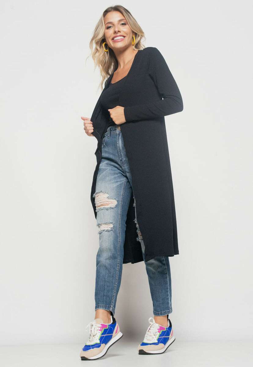 Kimono Alongado Manga Longa Canelado Preto Salvatore Fashion