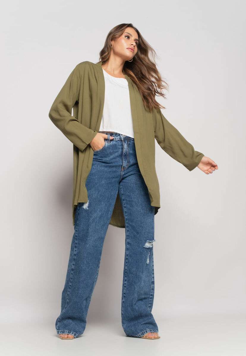 Kimono Manga Longa Viscolinho Verde Salvatore Fashion