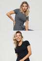 Kit 2 Blusas Básicas Comfy Malha Canelada Preta e Grafite