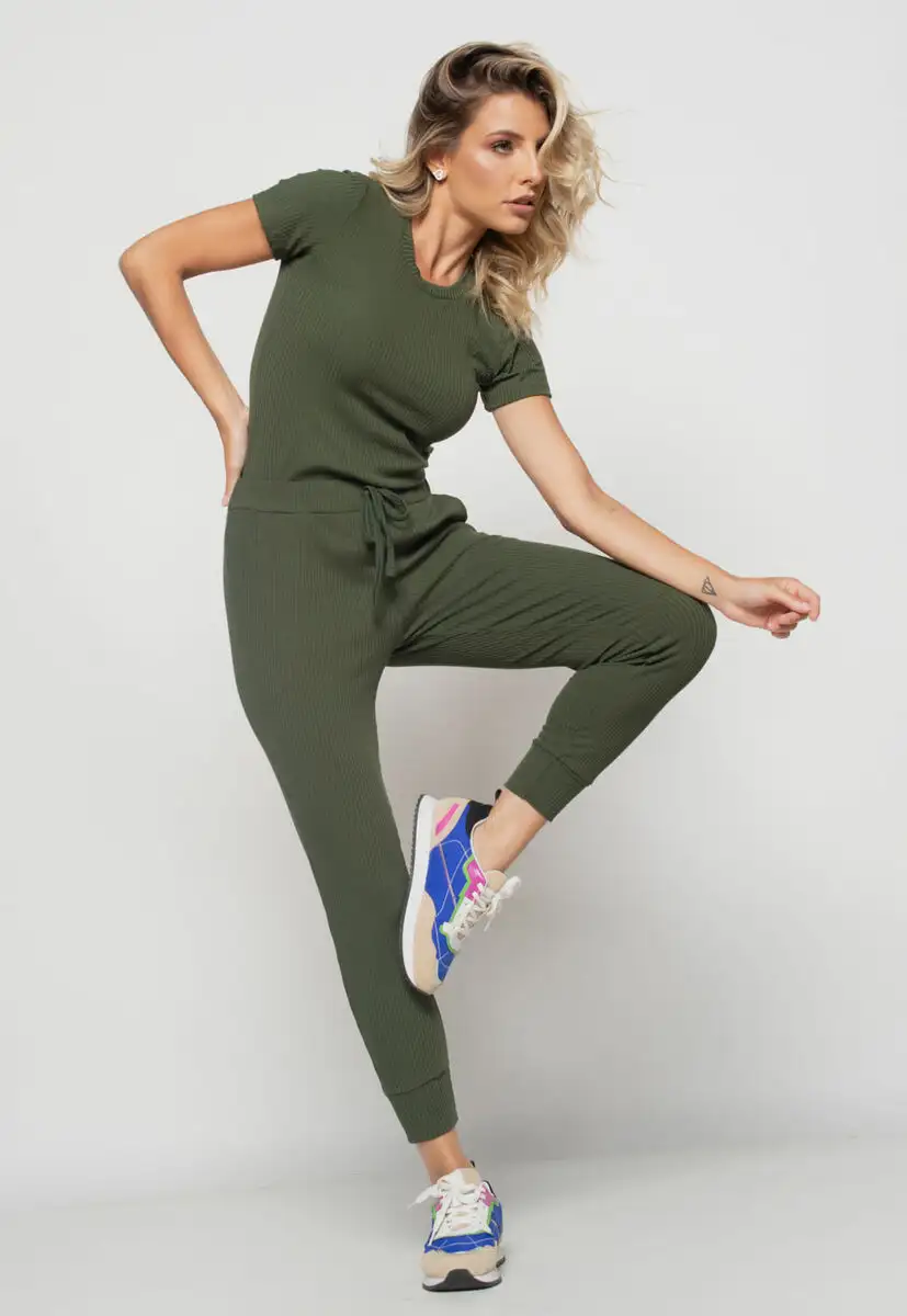 Kit 2 Blusas Básicas Comfy Malha Canelada Verde e Preta