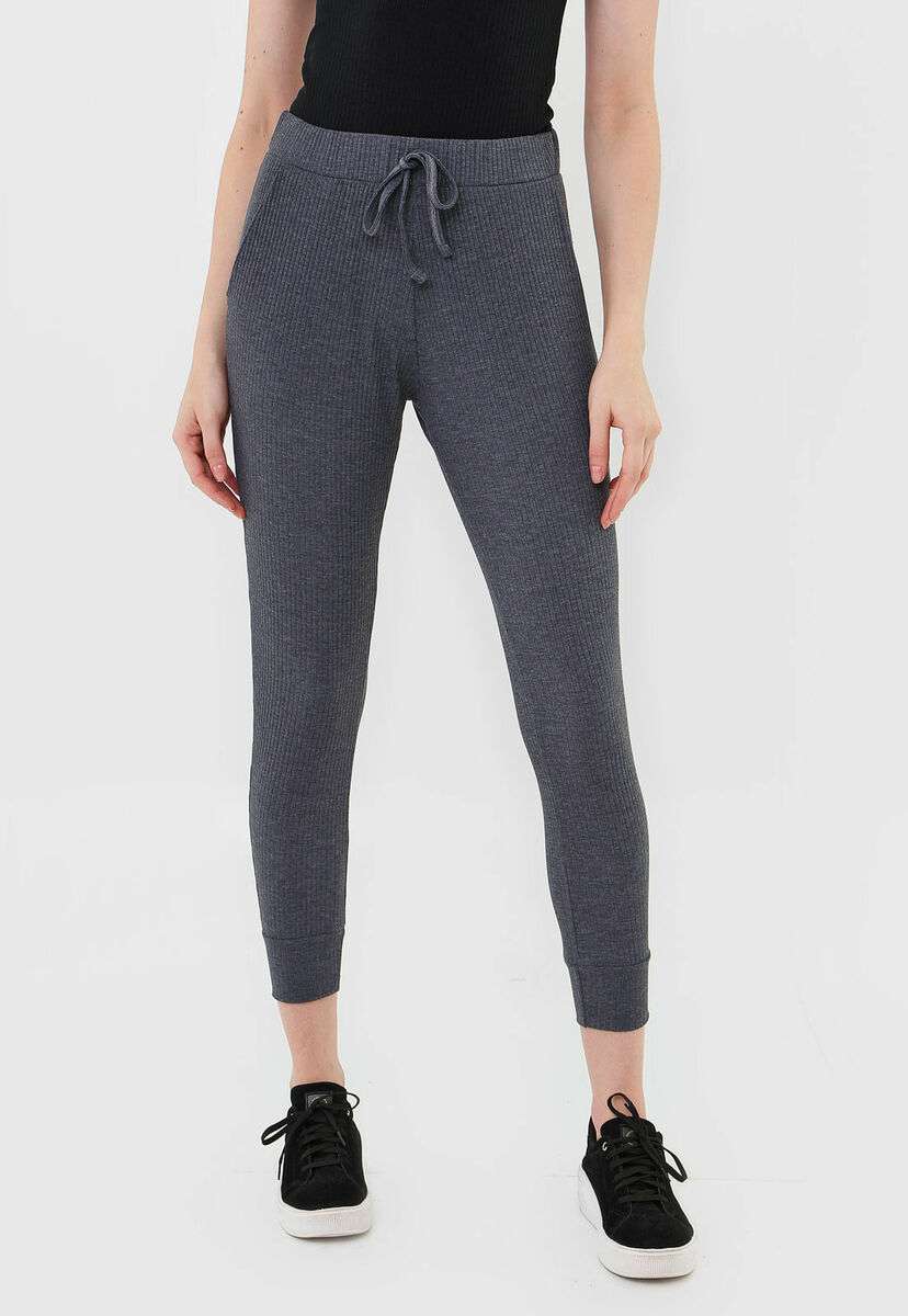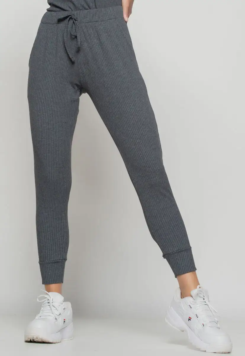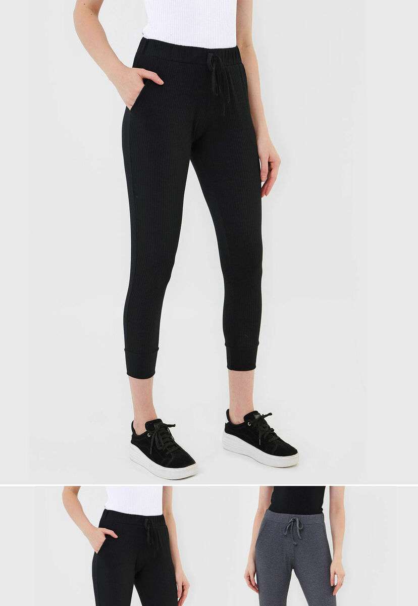 Kit 2 Calças Jogger Comfy Malha Canelada Preta e Grafite