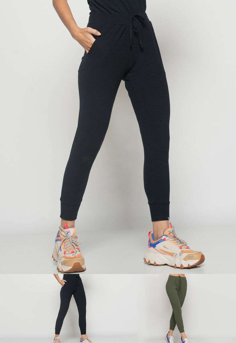 Kit 2 Calças Jogger Comfy Malha Canelada Verde e Preta