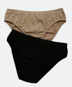 Kit com 2 calcinhas femininas sem costura, modelo biquíni, confeccionada em tecido poliamida, algodão e elastano. Possui cós alto com ribana, acabamento em costura no tom.