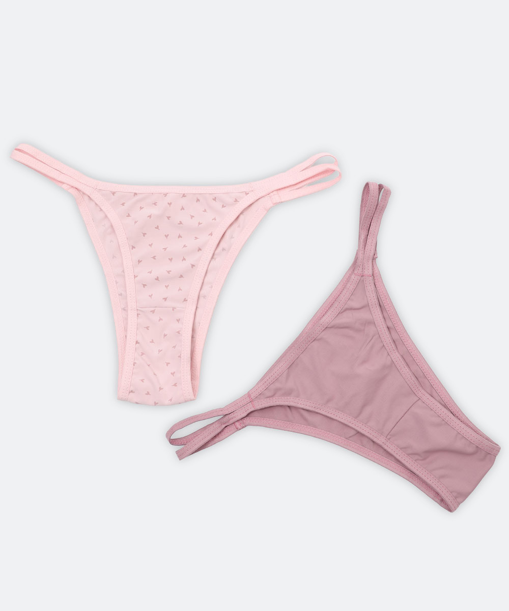 Kit 2 Calcinhas String Corações E Lisa Marisa Rosa