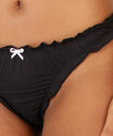 Kit 2 calcinhas feminina modelo tanga frufru composta por duas calcinhas, ambas confeccionada em poliamida e elastano. Possui laço decorativo no entremeio, detalhes franzidos, forro em algodão, acabamento e costura no tom.