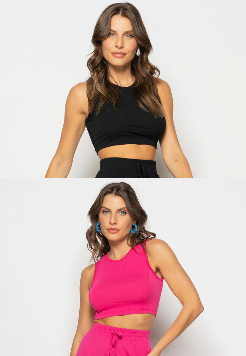 Kit 2 Croppeds Regata Recorte Malha PretoeCaramelo Salvatore Fashion