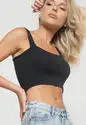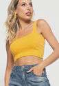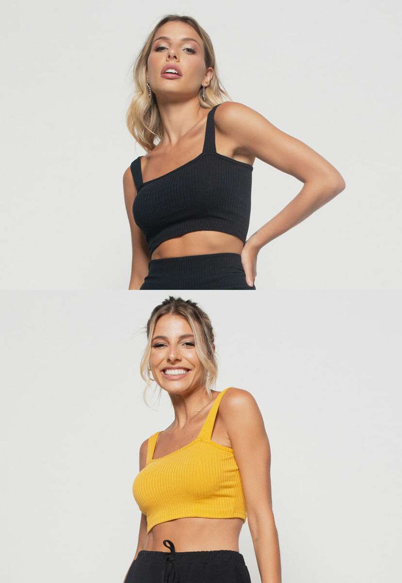 Kit 2 Croppeds Top Faixa Comfy Malha Canelada Preto e Mostarda
