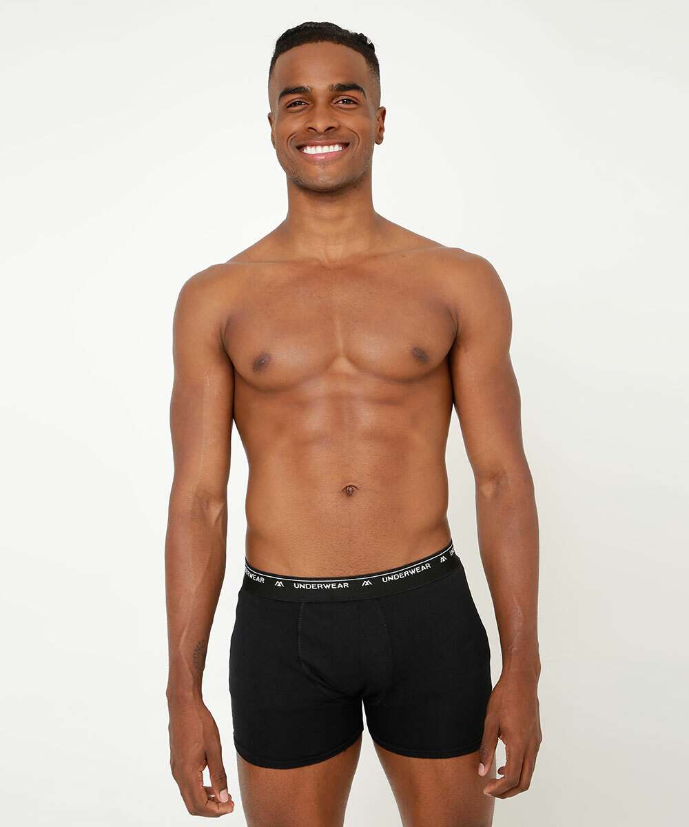 Composição: cueca preta 95% algodão, 5% elastano, cueca cinza 85% algodão, 10% poliéster, 5% elastano