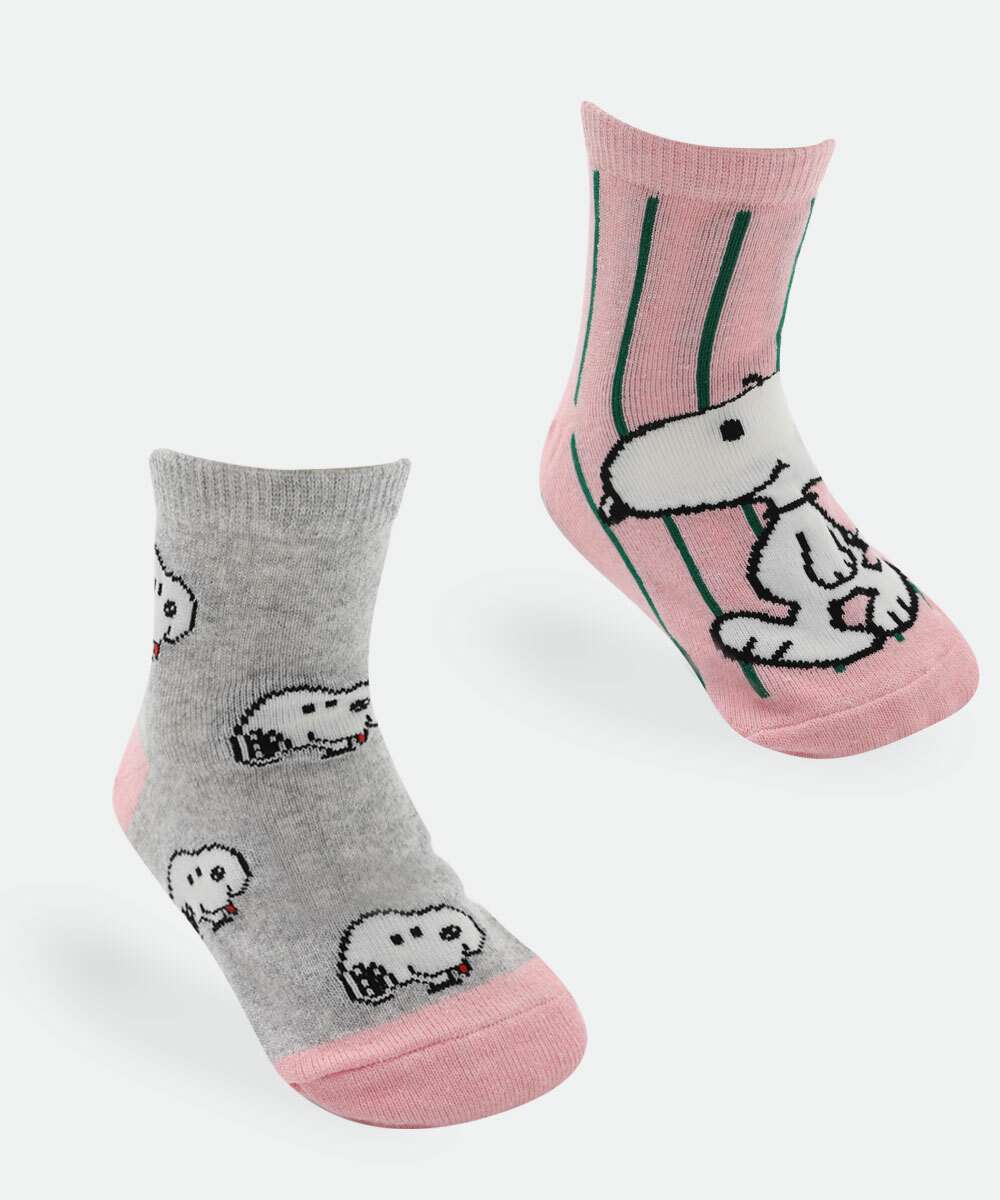 Kit 2 Meias Infantil Soquete Estampa Snoopy Rosa