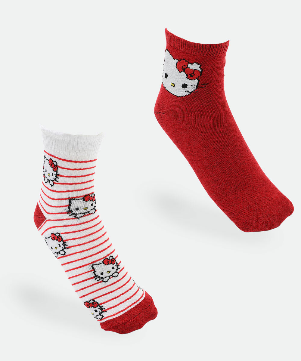 Kit 2 Meias Soquete Feminina Hello Kitty Vermelho