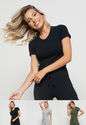 Kit 3 Blusas Básicas Comfy Malha Canelada Preta, Verde e Mescla