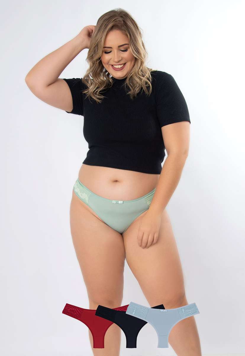 Kit 3 Calcinhas Charme Plus Size Microfibra Concept Lingerie Multicolorido