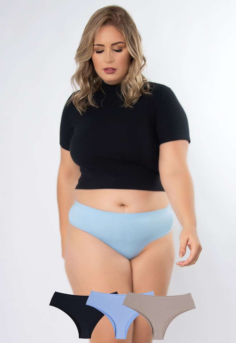 Kit 3 Calcinhas Pérola Plus Size Microfibra Concept Lingerie Multicolorido