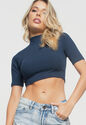 Kit 3 Croppeds Gola Alta Comfy Malha Canelada Verde, Preto e Azul