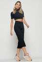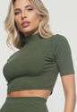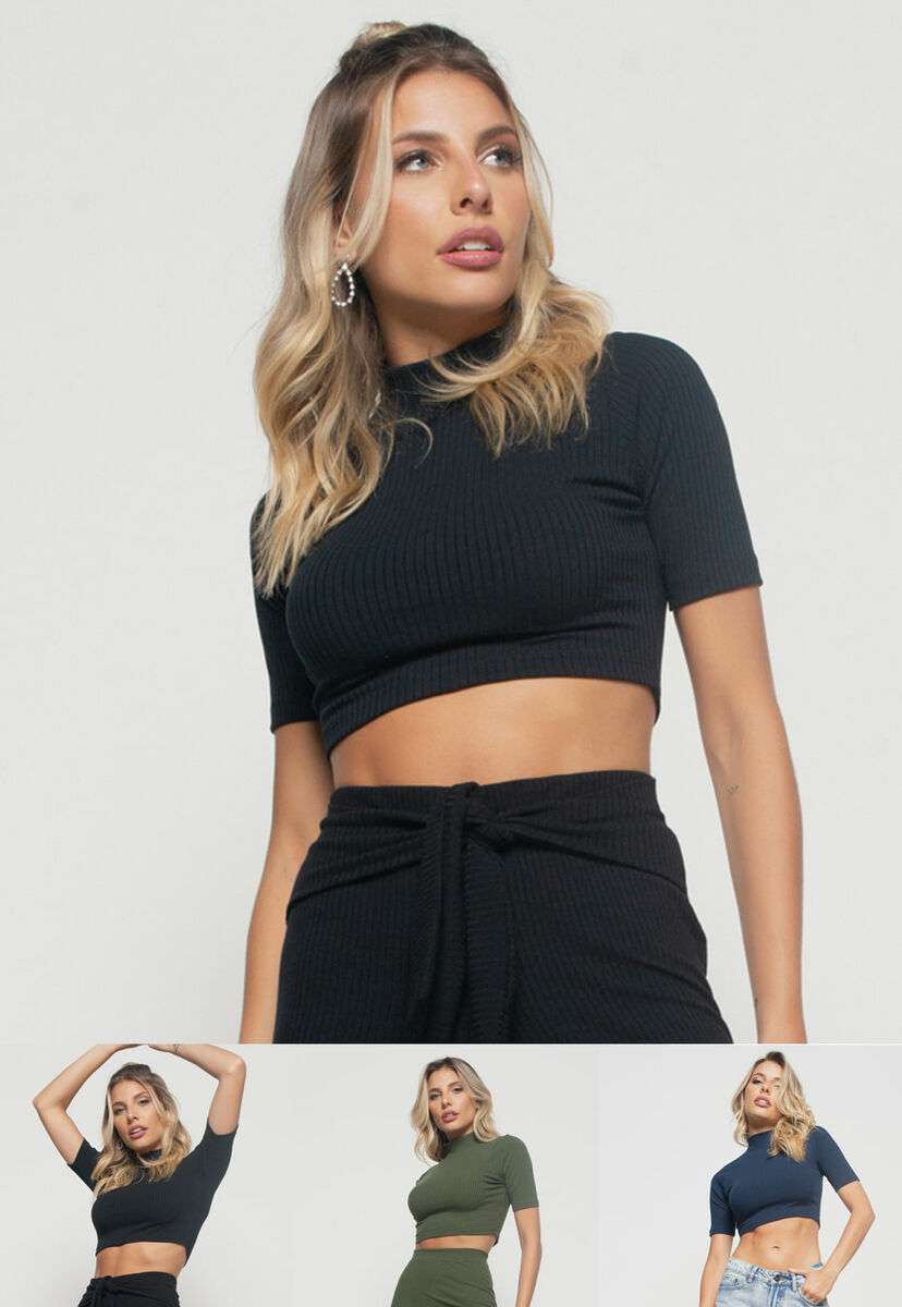 Kit 3 Croppeds Gola Alta Comfy Malha Canelada Verde, Preto e Azul