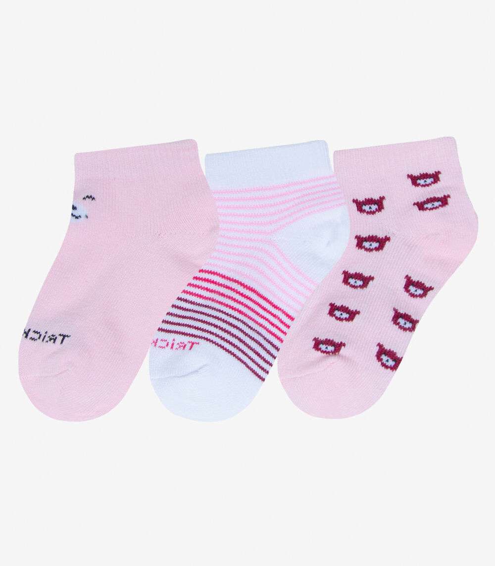 Kit 3 Pares De Meia Cano Curto Infantil Trick Nick Rosa