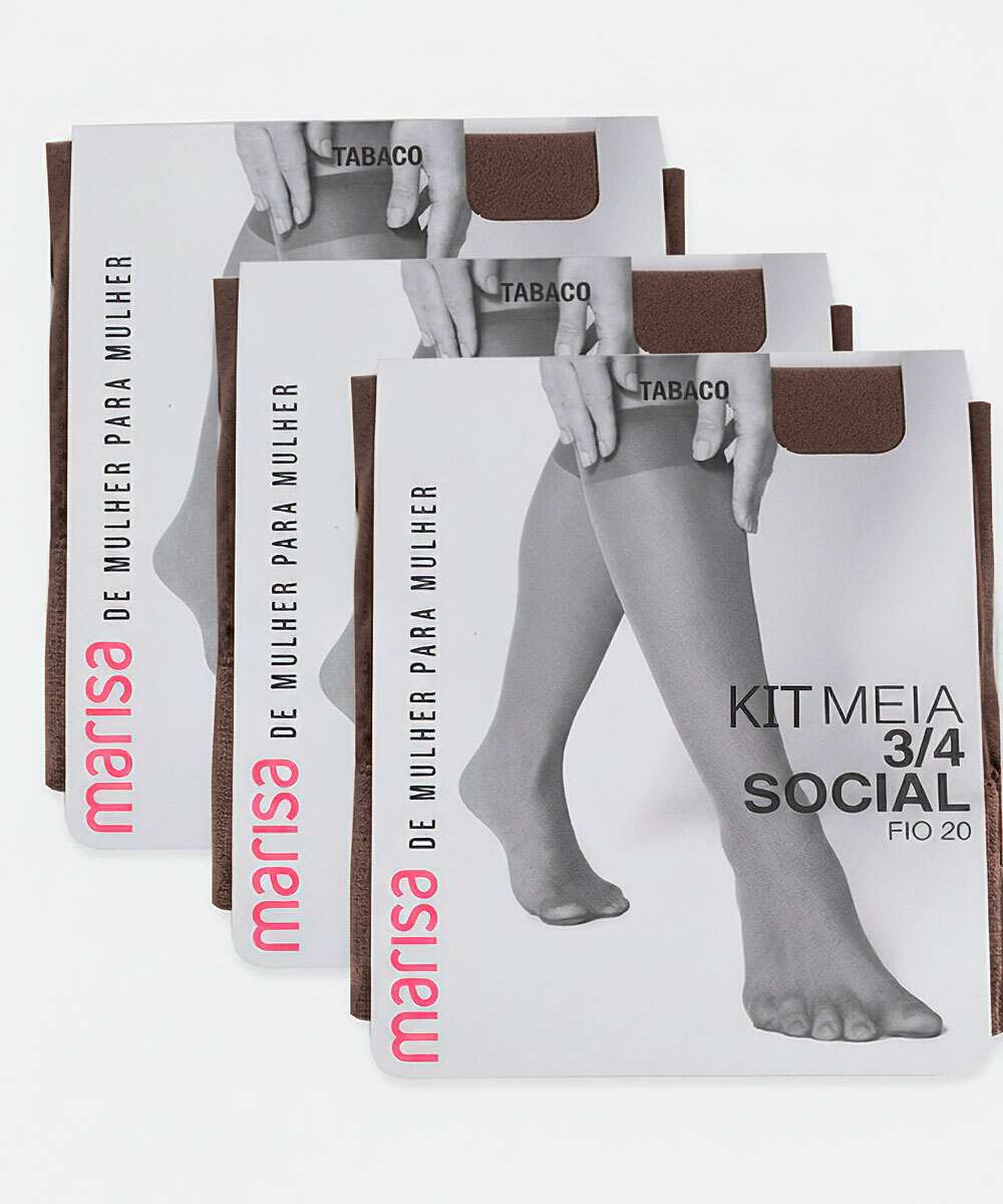Kit 3 Pares Meias 3/4 Feminina Social Fio 20 Marisa Tabaco