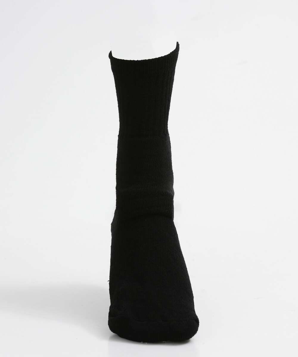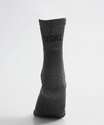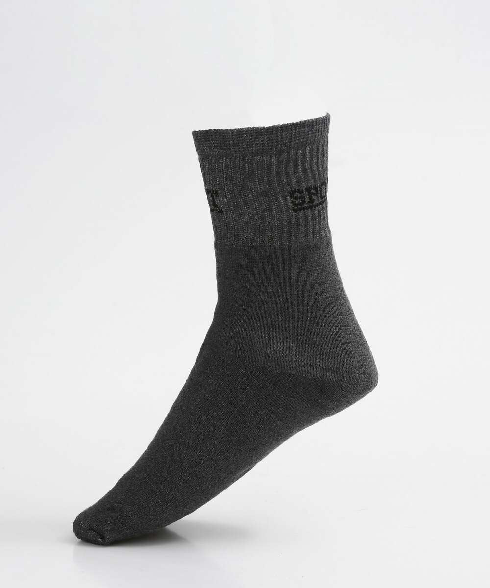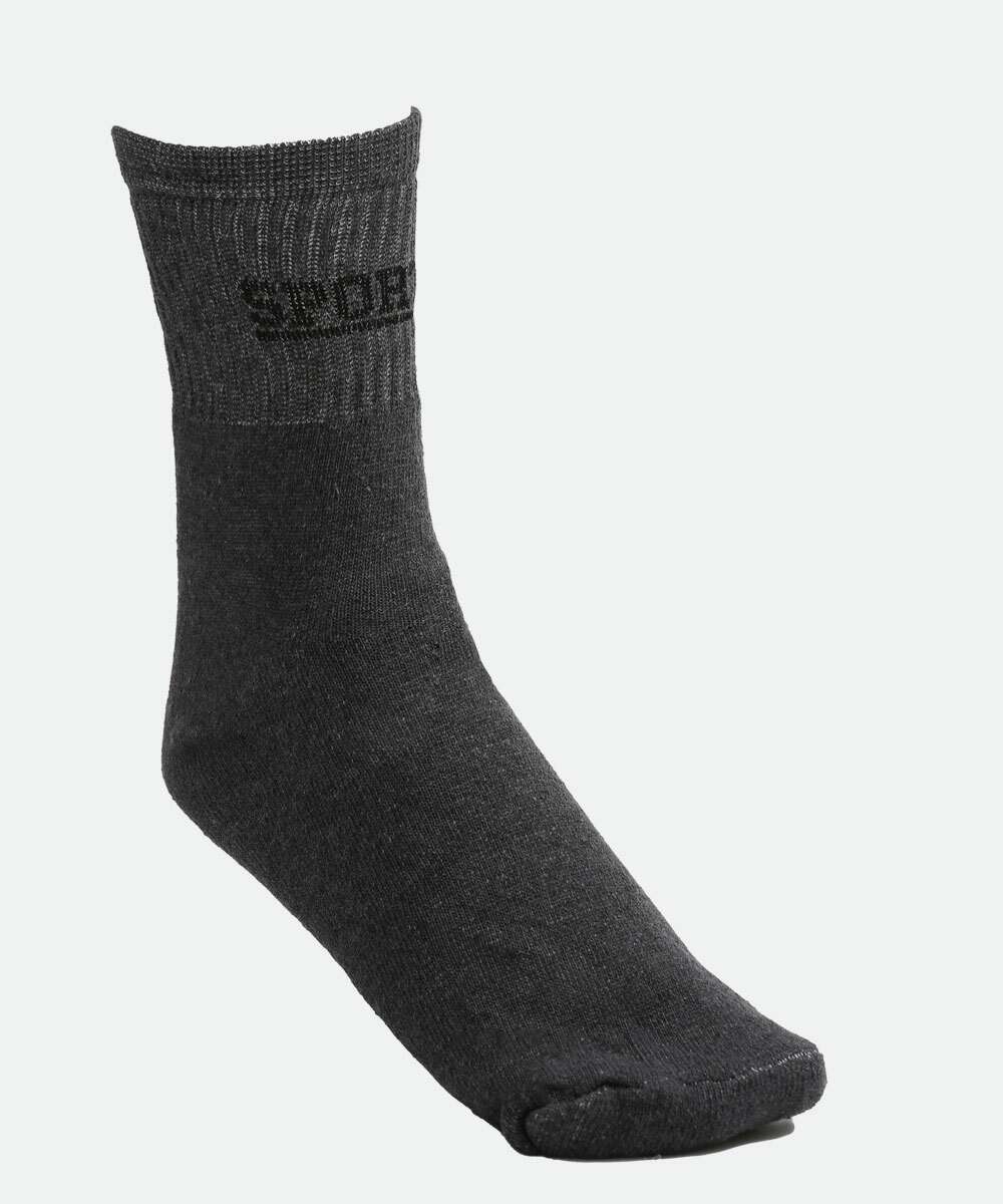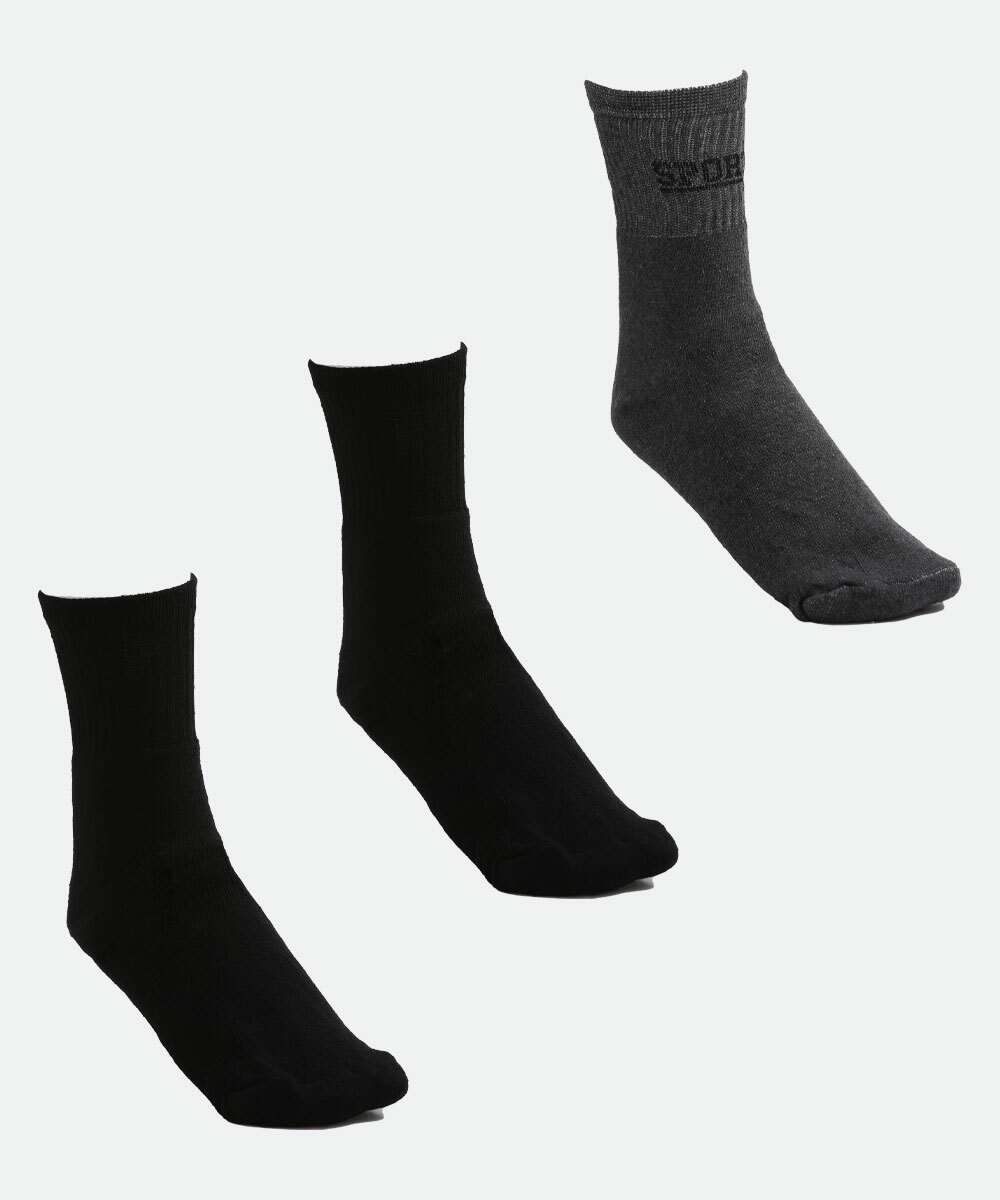 Kit masculino composto por três pares de meias, modelo cano médio esportivas confeccionadas em malha. Possui um par cinza e dois preto, acabamento e costura no tom.