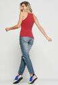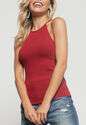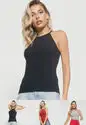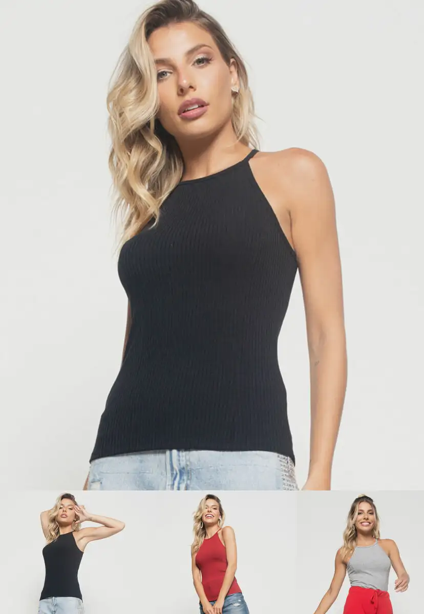 Kit 3 Regatas Cavada Alcinha Malha Canelada Preta, Vermelha e Mescla