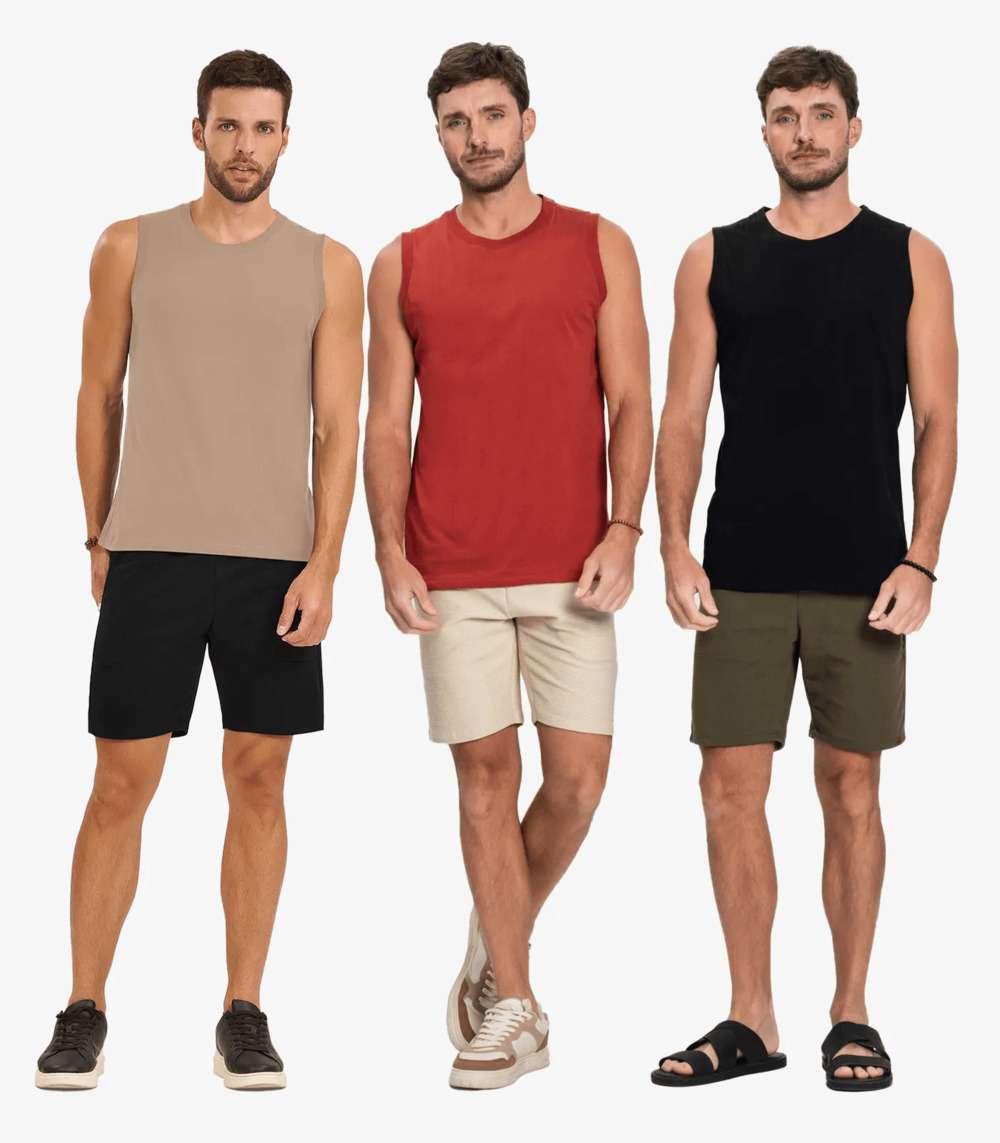 Kit 3 Regatas Masculinas Básicos Meia Malha Diametro Sortido