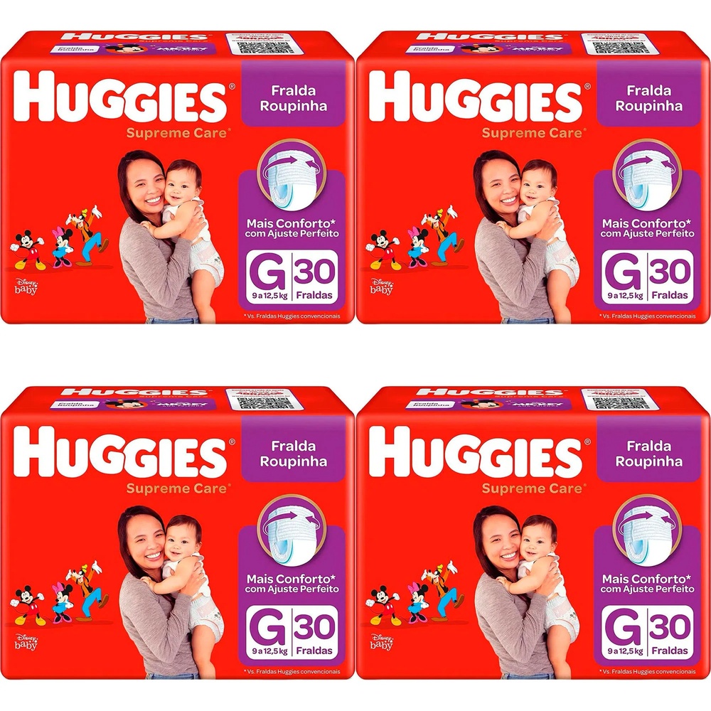 Kit 4 Fraldas Huggies Roupinha Supreme Care G c/30 Unidades cada