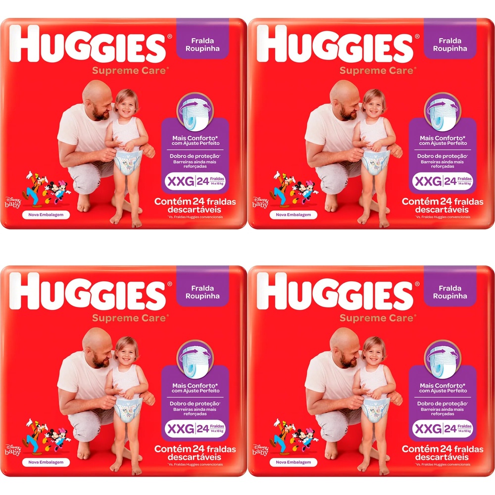 Kit 4 Fraldas Huggies Roupinha Supreme Care Xxg 24 Unidades cada