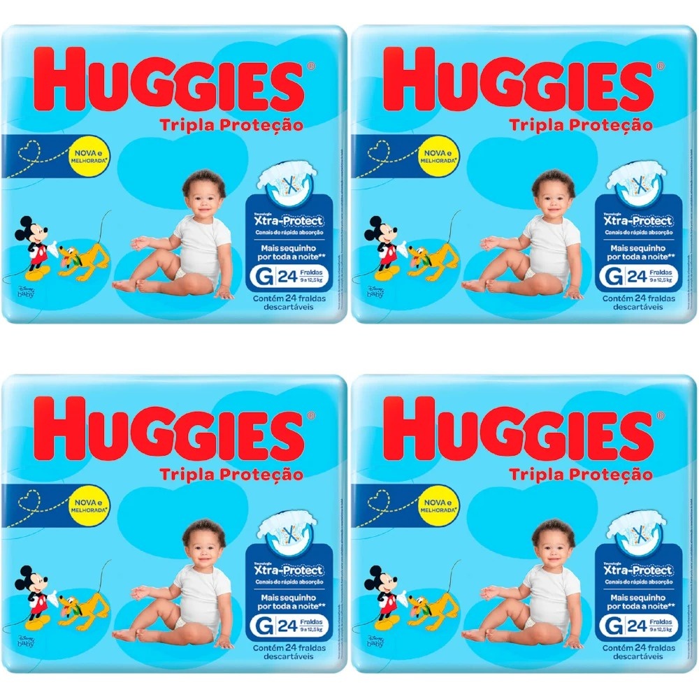 Kit 4 Fraldas Huggies Tripla Proteção Jumbo (G) 24 Unidades cada
