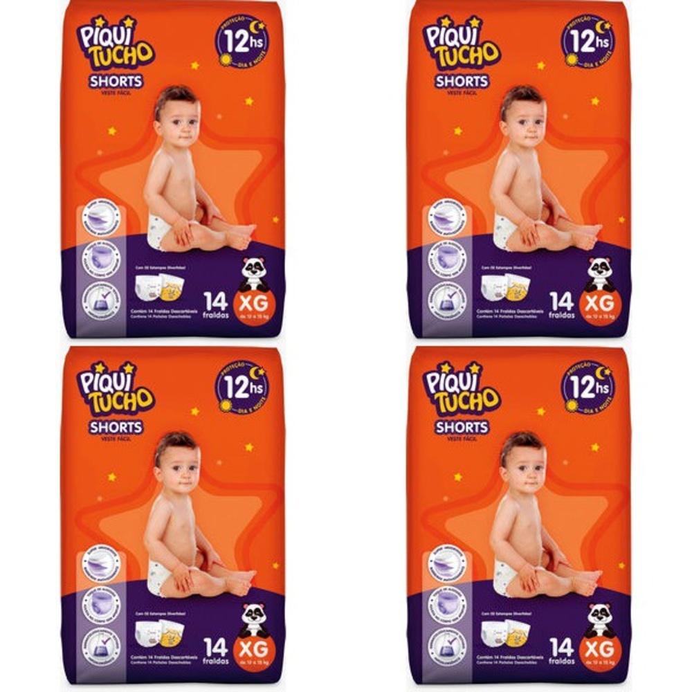 Kit 4 Fraldas Shorts Piquitucho Jumbinho (Xg) c/14 Unidades cada. A Fralda Shorts Piquitucho Jumbinho é a escolha ideal para os pequenos que precisam de conforto e proteção. Com um design que se adapta perfeitamente ao corpo, esta fralda é feita para proporcionar liberdade de movimento, permitindo que seu bebê brinque e explore o mundo à vontade. Benefícios:Conforto Superior: Com material macio e respirável, garante que a pele do seu bebê fique sempre confortável e sequinha.Absorção Eficiente: A tecnologia de absorção rápida mantém a umidade longe da pele, evitando assaduras.Ajuste Perfeito: O elástico nas pernas e na cintura proporciona um ajuste seguro, evitando vazamentos e oferecendo liberdade de movimento.Indicação:Recomendada para bebês a partir de 9 kg, a Fralda Shorts Piquitucho é ideal para o dia a dia, seja em casa ou em passeios. Modo de Uso:Abra a fralda e posicione-a sob o bebê.Ajuste as laterais, garantindo que esteja bem fixada.Verifique se as pernas estão bem ajustadas para evitar vazamentos.Resultado:Seu pequeno ficará confortável e protegido, pronto para brincar e explorar, sem preocupações! Composição:Fabricada com materiais de alta qualidade, que respeitam a pele sensível do bebê. Precauções:Armazenar em local fresco e seco. Uso externo. Em caso de irritação, suspenda o uso e procure orientação médica. Informações Adicionais:Não realizamos testes em animais e nossos produtos são dermatologicamente testados. Experimente a Fralda Shorts Piquitucho Jumbinho (XG) e descubra como é fácil manter seu bebê confortável e feliz durante todo o dia!