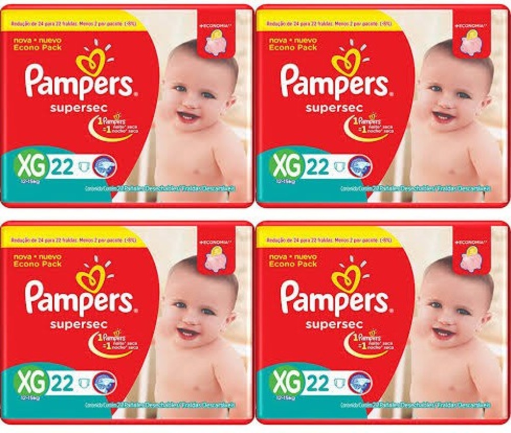Kit 4 Fraldas Supersec ”Xg” Pampers Simples c/22 Unidades cada. A Fralda Supersec Pacotão “XG” Pampers é a escolha ideal para os papais que buscam conforto e proteção para o seu bebê. Com tecnologia avançada, essas fraldas oferecem máxima segurança e suavidade, garantindo que seu pequeno fique sempre sequinho e confortável. Benefícios:Secagem Rápida: A tecnologia de absorção mantém a pele do bebê seca por mais tempo, prevenindo irritações.Conforto Superior: Com um ajuste perfeito ao corpo do bebê, permitem total liberdade de movimentos.Material Respirável: A camada externa é feita de um material que permite a circulação de ar, mantendo a pele fresca.Indicação:Indicado para bebês que usam a numeração XG, ideal para o uso diário, seja em casa ou em passeios. Modo de Uso:Coloque a fralda de forma que o adesivo fique na parte traseira, ajustando as laterais para que fiquem confortáveis, mas seguras. Verifique frequentemente para garantir que a fralda esteja bem posicionada e troque sempre que necessário. Resultado:Seu bebê ficará confortável e livre de assaduras, pronto para explorar o mundo com segurança! Composição:Fabricada com materiais de alta qualidade que garantem a proteção e o conforto do seu bebê. Precauções:Manter em local fresco e seco. Evitar contato com produtos químicos. Em caso de irritação, suspenda o uso e consulte um médico. Informações Adicionais:Não realizamos testes em animais.Dermatologicamente testado.Experimente a Fralda Supersec Pacotão “XG” Pampers e descubra como é fácil manter seu bebê confortável e protegido durante todo o dia!