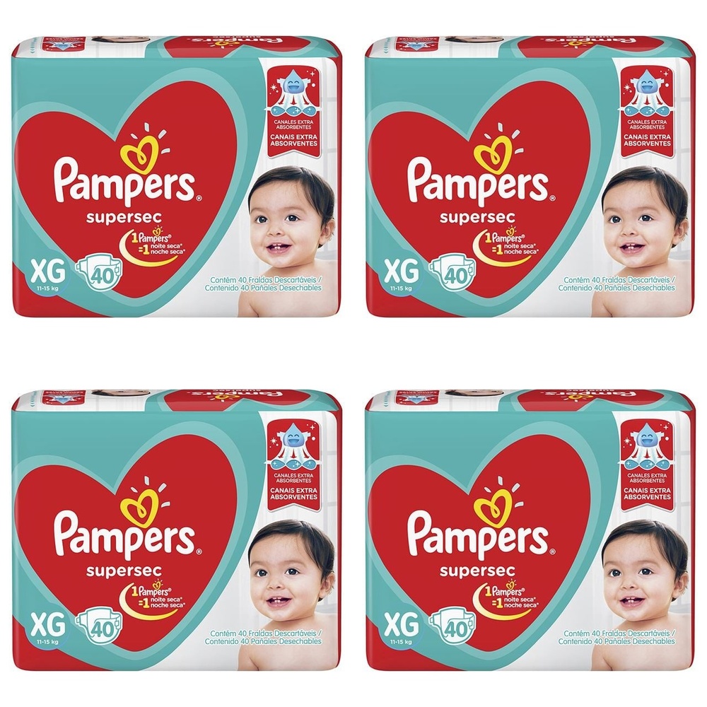 Kit 4 Fraldas Supersec Hiper ”Xg” Pampers Simples c/40 Undades. A Fralda Supersec Hiper “XG” Pampers é a escolha ideal para manter o seu bebê sempre seco e confortável! Com uma tecnologia inovadora, essas fraldas oferecem uma absorção incrível, garantindo que a pele do seu pequeno esteja sempre protegida e livre de irritações. Benefícios:Absorção Rápida: A camada interna absorve rapidamente a umidade, mantendo a pele do bebê sequinha.Conforto Superior: O material macio e respirável proporciona um ajuste perfeito, permitindo liberdade de movimento.Tamanho Ideal: A fralda "XG" é perfeita para bebês maiores, garantindo conforto e segurança.Indicação:Indicada para uso diário, a Fralda Supersec Hiper “XG” é perfeita para os momentos de brincadeira e descanso, oferecendo a proteção que seu bebê merece. Modo de Uso:Coloque a fralda com a parte colorida voltada para fora, ajustando as abas laterais para um encaixe seguro. Troque sempre que necessário para garantir a saúde e o bem-estar do seu pequeno. Resultado:Com a Fralda Supersec Hiper “XG” Pampers, seu bebê ficará confortável e protegido, permitindo que você desfrute de momentos de alegria e tranquilidade. Composição: Polímeros super absorventes, camada externa respirável e materiais dermatologicamente testados. Precauções:Armazenar em local fresco e seco. Em caso de irritação, suspenda o uso e consulte um pediatra. Experimente a Fralda Supersec Hiper “XG” Pampers e descubra como é fácil manter seu bebê feliz e seco durante todo o dia!
