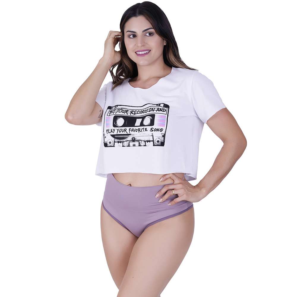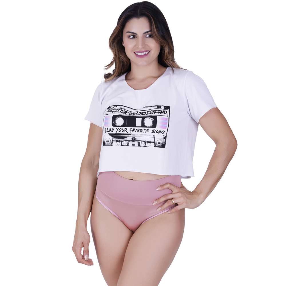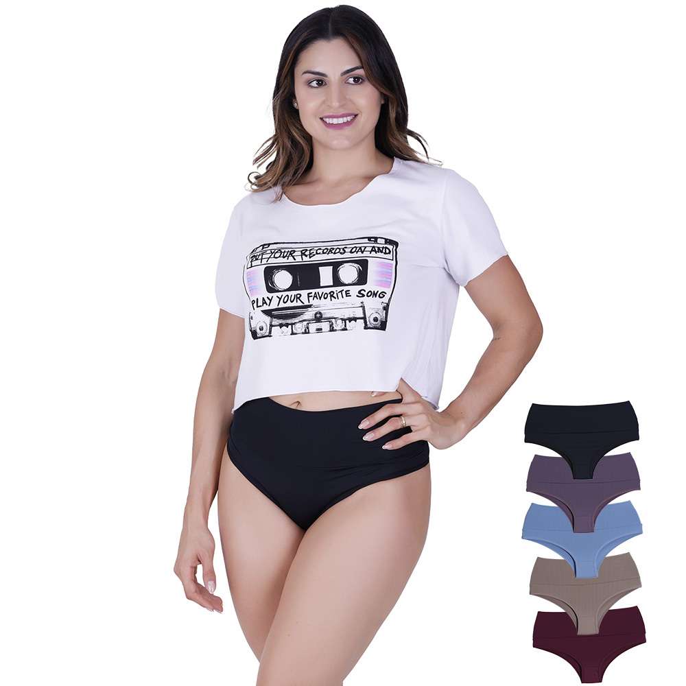 Kit 5 Calcinhas Cós Alto Microfibra Multicolorido