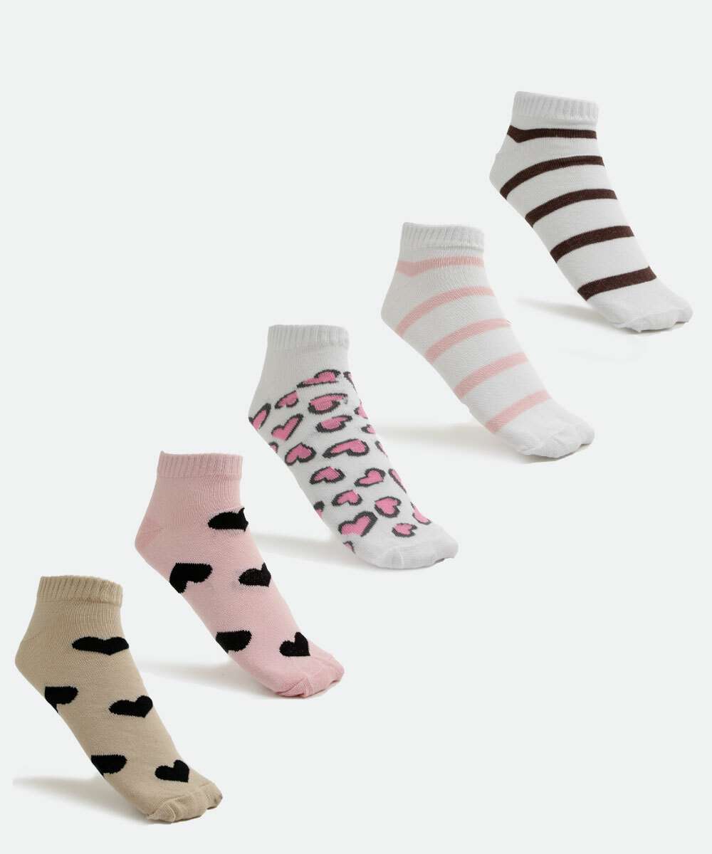 Kit 5 Pares Meias Cano Curto Feminina Estampadas Marisa
