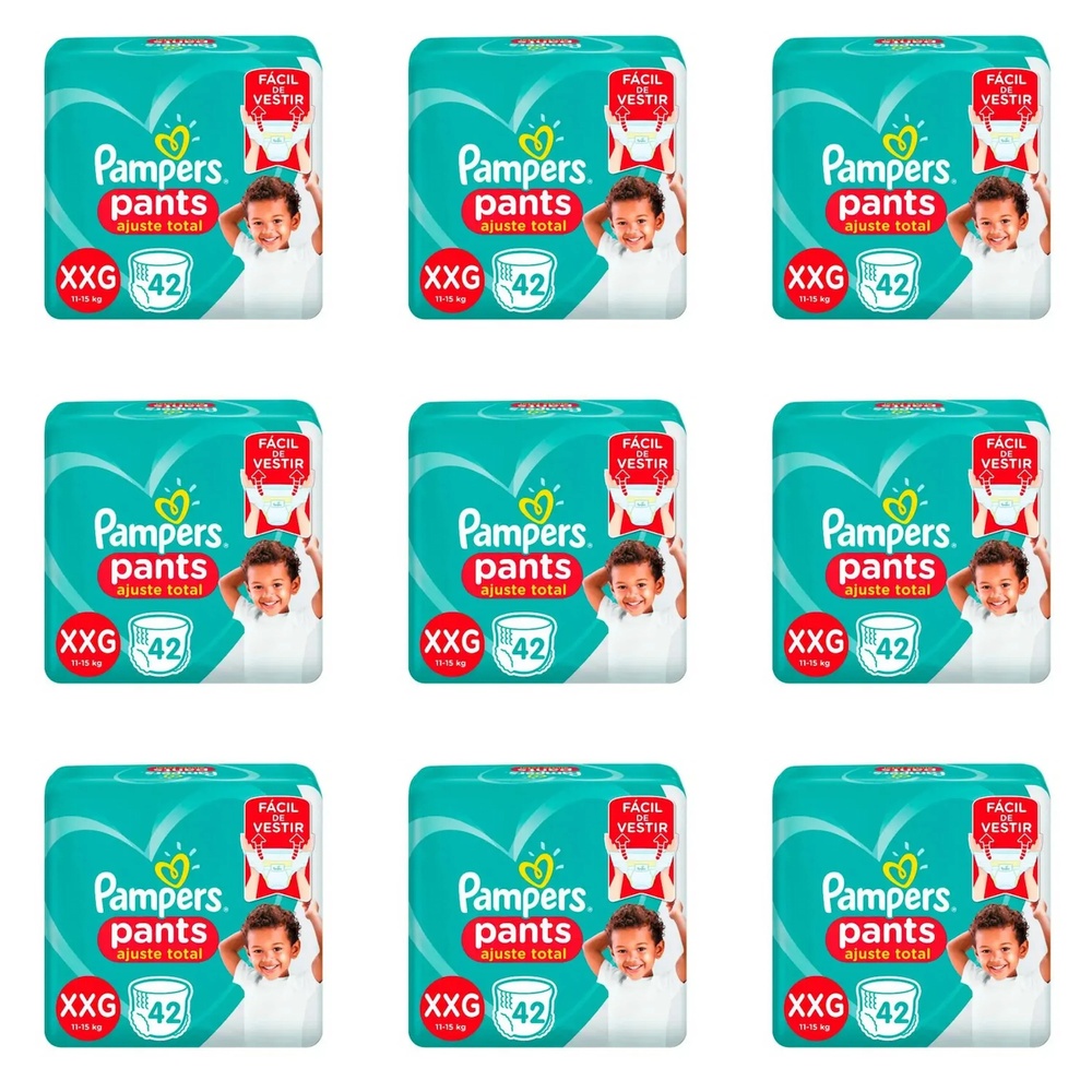 Kit 9 Fraldas Pampers Pants Xxg c/42 Unidades cada. Fraldas Pampers Pants são a escolha ideal para pais que buscam conforto e proteção para seus bebês. Com um design prático e ajustável, essas fraldas oferecem uma experiência de uso sem igual, permitindo que seu pequeno se movimente livremente. Benefícios:Conforto Superior: A tecnologia de ajuste das Pampers Pants garante que a fralda se adapte perfeitamente ao corpo do seu bebê, proporcionando liberdade de movimento.Absorção Rápida: Com camada absorvente que retém a umidade, mantém a pele do bebê seca e confortável por mais tempo.Fácil de Vestir: O modelo tipo calça facilita a colocação e remoção, tornando o momento da troca mais prático para os pais.Indicação:Recomendadas para bebês que usam o tamanho XXG, essas fraldas são perfeitas para o dia a dia, oferecendo segurança e conforto para brincar e explorar. Modo de Uso:Coloque a fralda: Vista a fralda como uma calça, puxando-a suavemente até a cintura do bebê.Ajuste: Verifique se a fralda está bem ajustada na cintura e nas pernas, evitando vazamentos.Troca: Ao perceber que a fralda está cheia, troque-a por uma nova para manter a pele do seu bebê saudável.Resultado:Seu bebê desfrutará de um dia inteiro de conforto, garantindo que cada momento seja de alegria e diversão! Composição: Material macio, camada absorvente e barreiras de proteção para evitar vazamentos. Precauções: Armazenar em local fresco e seco. Usar apenas para a finalidade indicada. Em caso de irritação, suspenda o uso e consulte um médico. Experimente as Fraldas Pampers Pants XXG c/42 Unidades e veja como é fácil manter seu bebê confortável e feliz!