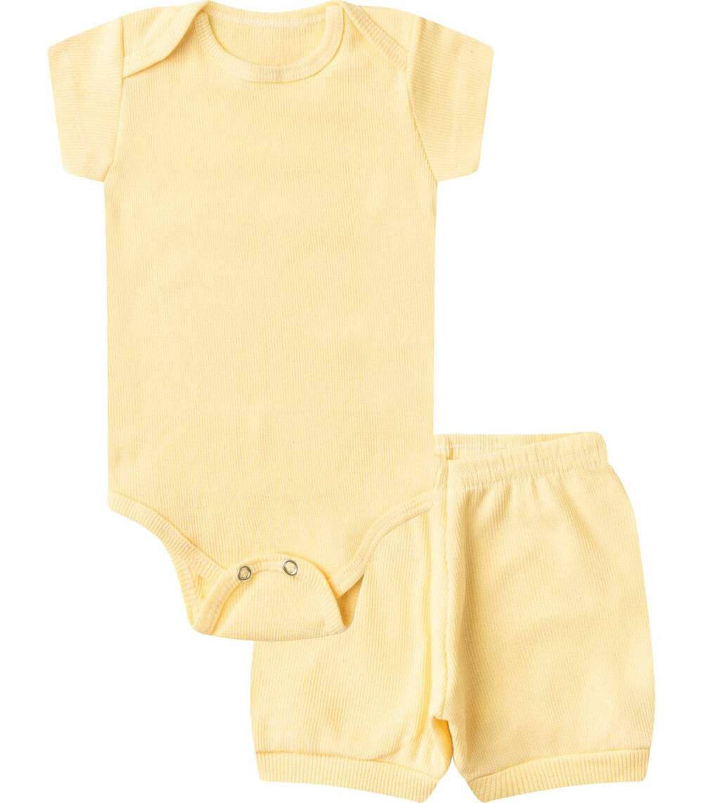Kit Body Bebê Curto Canelado 2 Peças Select Amarelo
