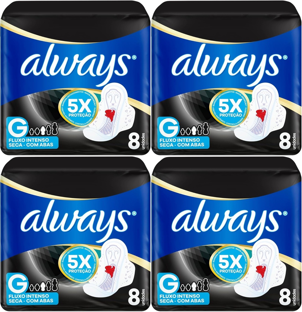 Kit c/4 Absorvente Cobertura Seca Noturno Com Abas Always Simples 8 Unidades