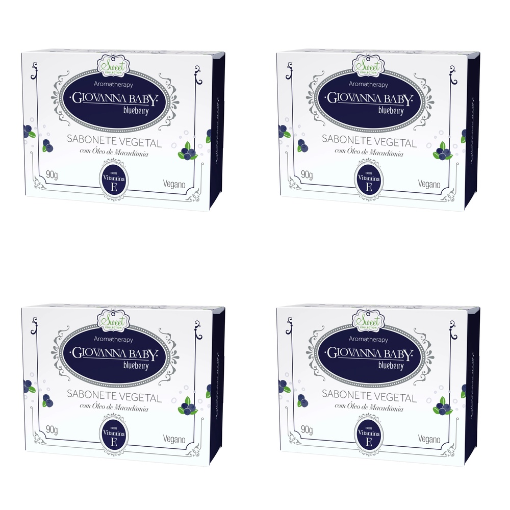 Kit c/4 Sabonetes Giovanna Baby Vegetal Retangular 90g Bluberry