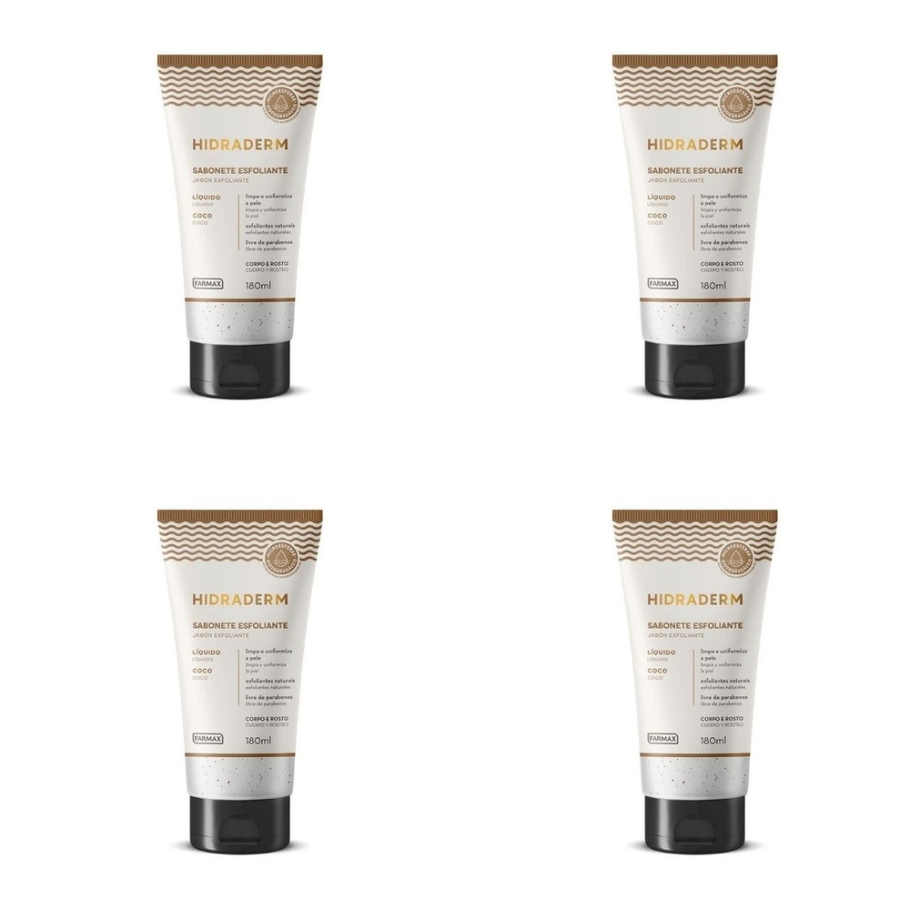 Kit c/4 Sabonetes Líquido Hidraderm Esfoliante 180ml Coco