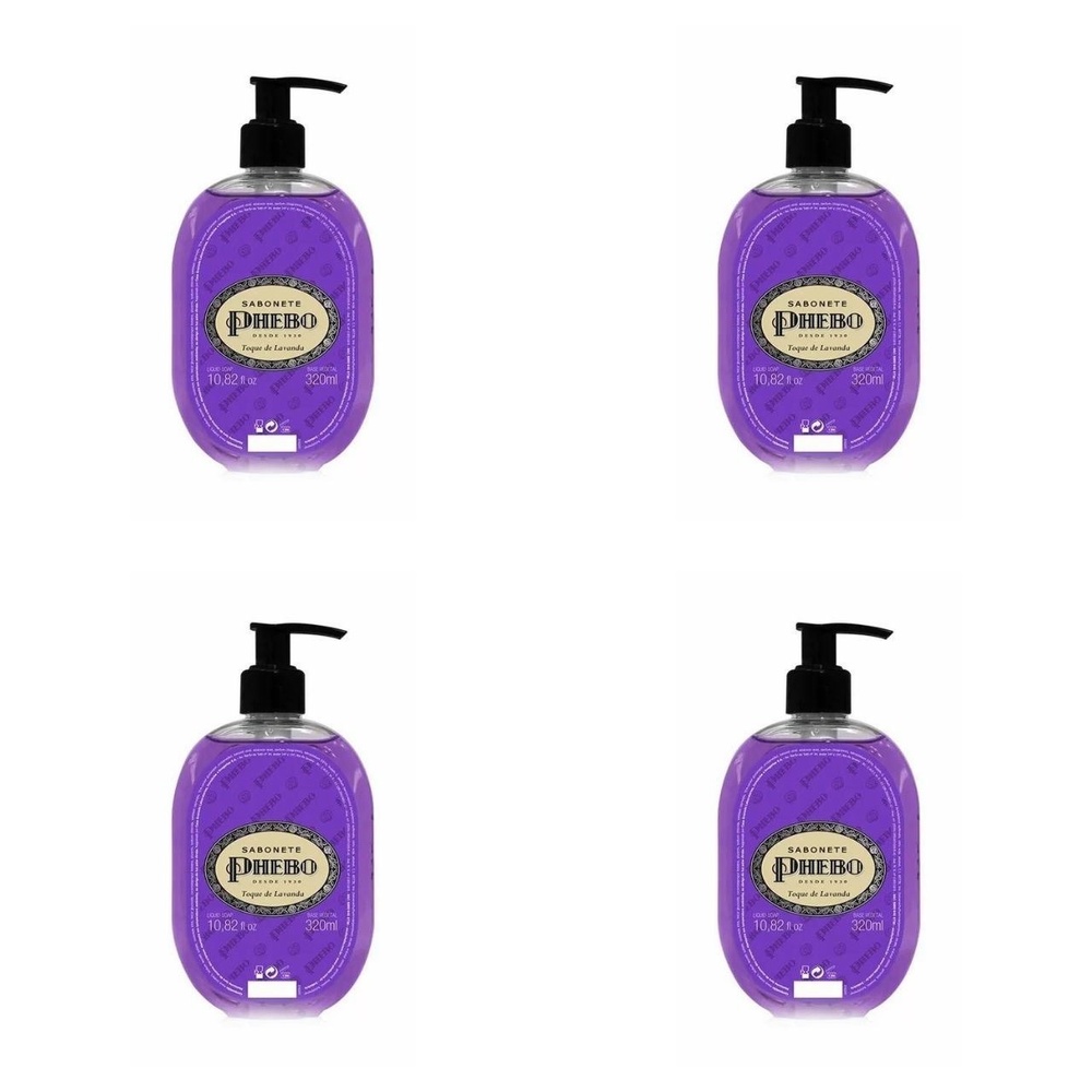 Kit c/4 Sabonetes Liquido Phebo Odor De Rosas 320ml Toque De Lavanda