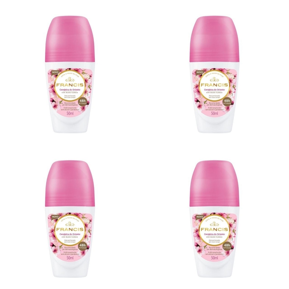 Kit c/4 Unidades de Desodorante Rollon Francis Hydrata 50ml Cerejeira Do Oriente