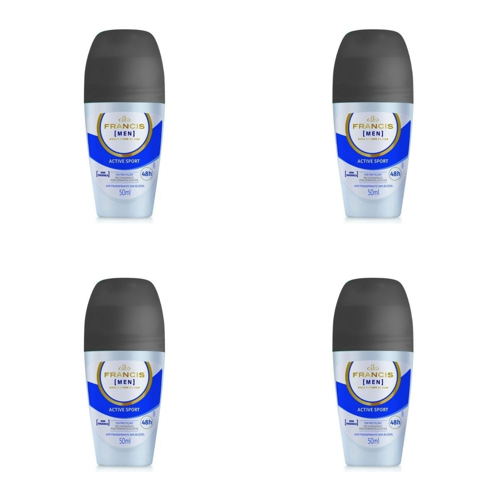 Kit c/4 Unidades de Desodorante Rollon Francis Hydrata 50ml Men Azul