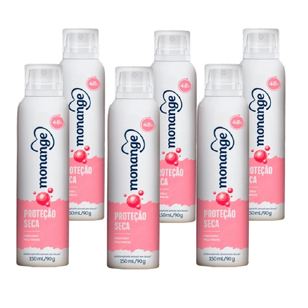 Kit c/6 Unidades de Desodorante Aero Monange 90g Proteção Seca